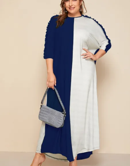 Black and white stitching short-sleeved plus size fashion hedging long dress