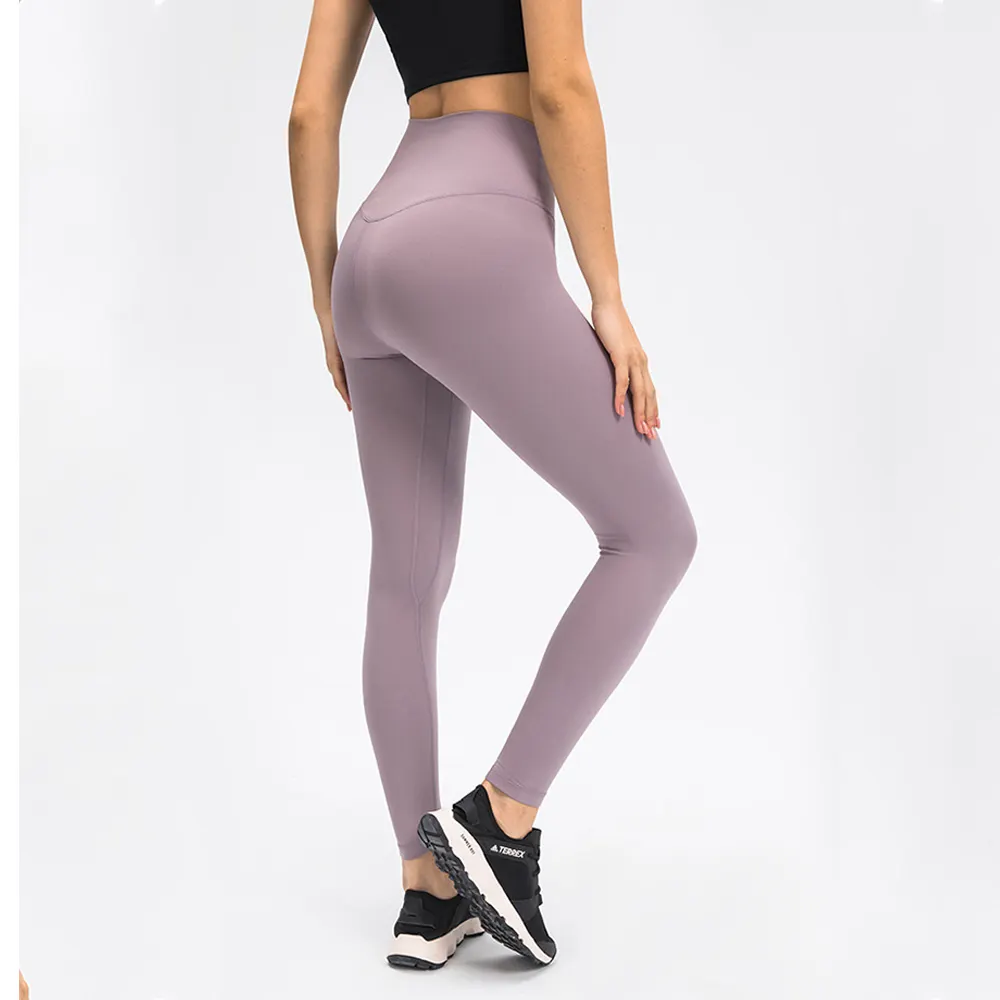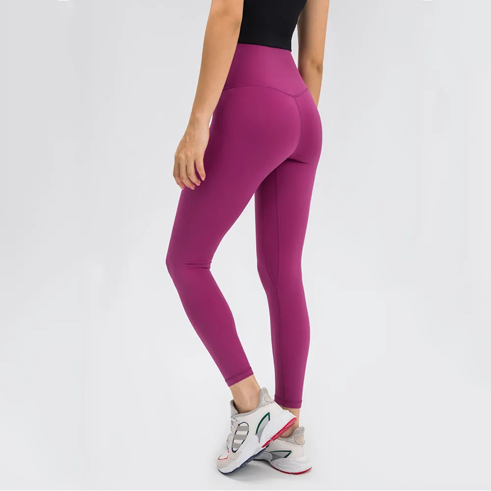 Wholesaleactivewears Dark Purple Brushed Yoga Pants High Waist Hips Fitness Pants Running Sports Peach Pants