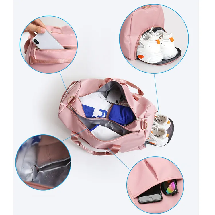 3. Large capacity: The sports gym bag has one spacious main pocket and three separate pockets, have a large main compartment, have a wet-dry pocket for separating some wet clothes or towels.,the yoga gym bag has a small pocket on the left side, In addition, the duffle bag men also have one shoe compartment for sneakers.