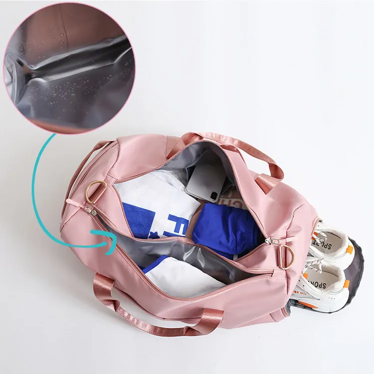 2. Dry Wet Separated: The material can help you to separate dry items and wet items, behind the workout bag, it comes with 1 waterproof zipper pocket behind it for separating some wet clothes or towels.