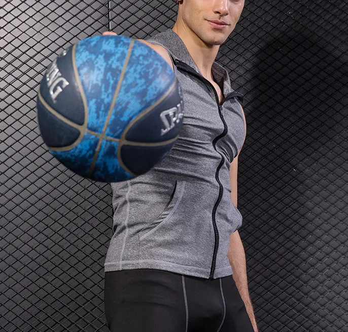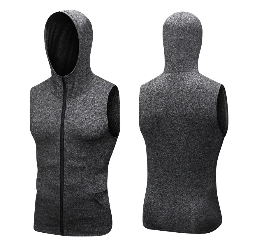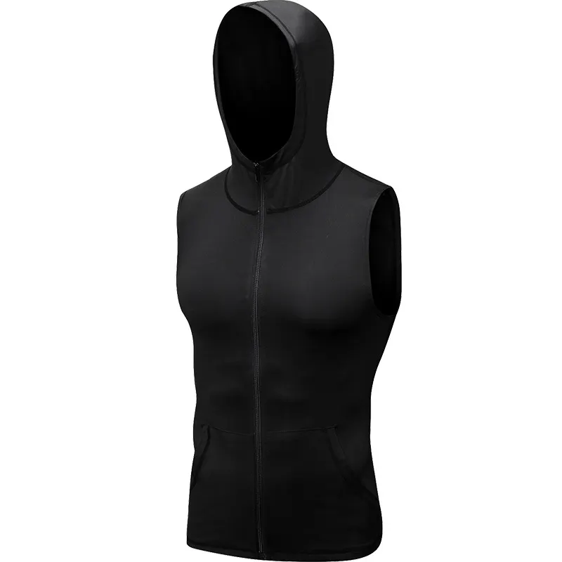 Wholesaleactivewears Navy Blue Men's Tight Sleeveless Vest Zipper Hooded Quick-drying Jacket