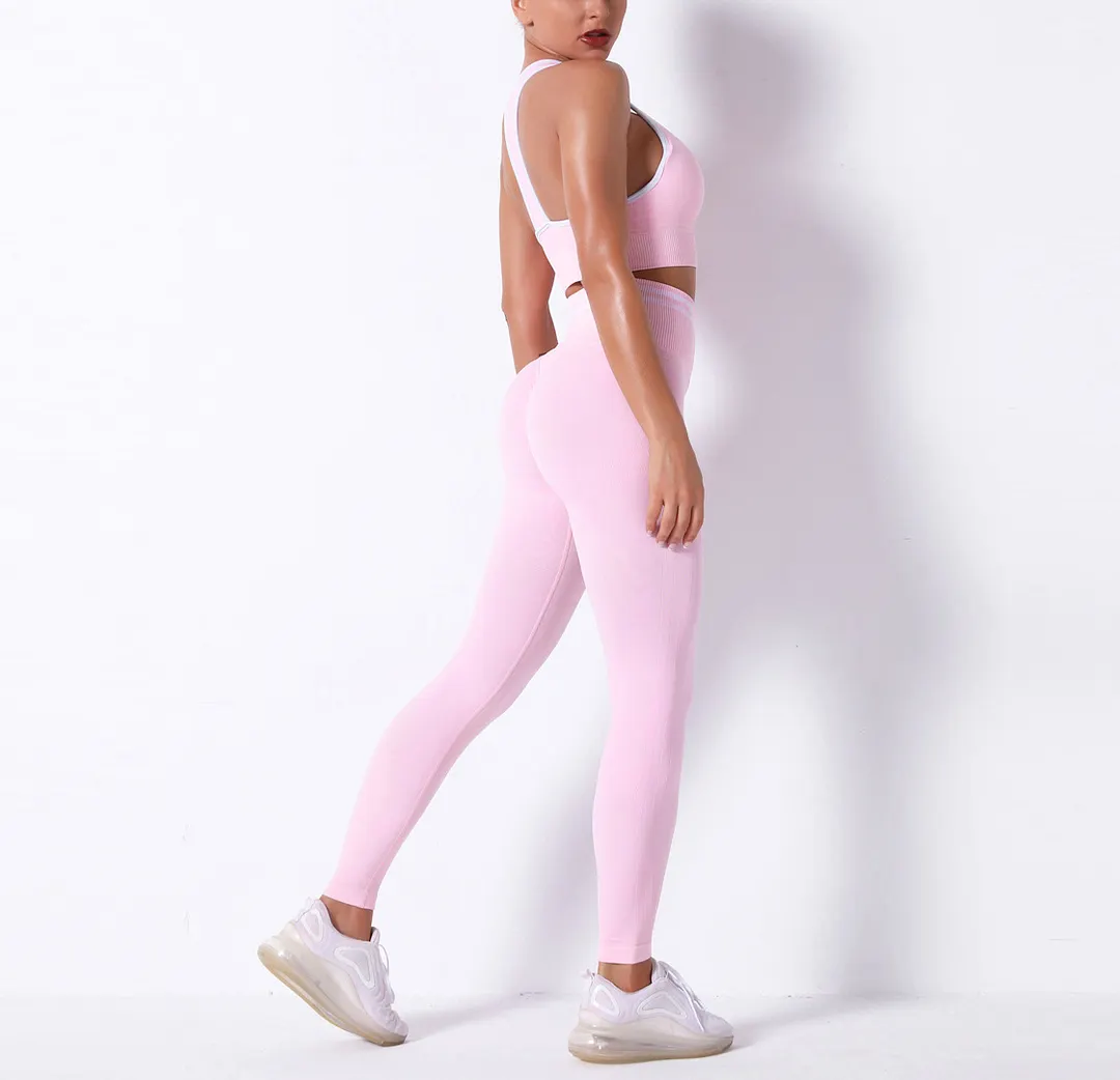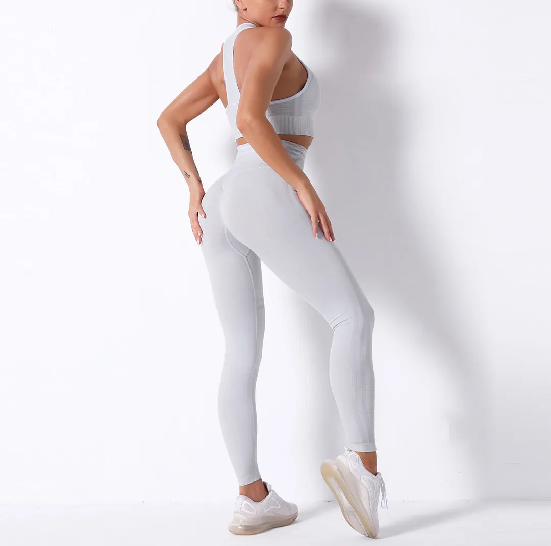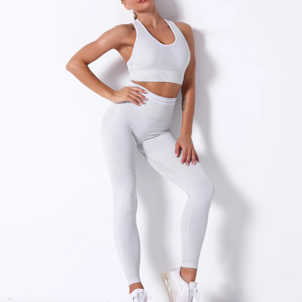 Wholesaleactivewears White Seamless Knitted Bra Set Sexy Hip Fitness Yoga Pants