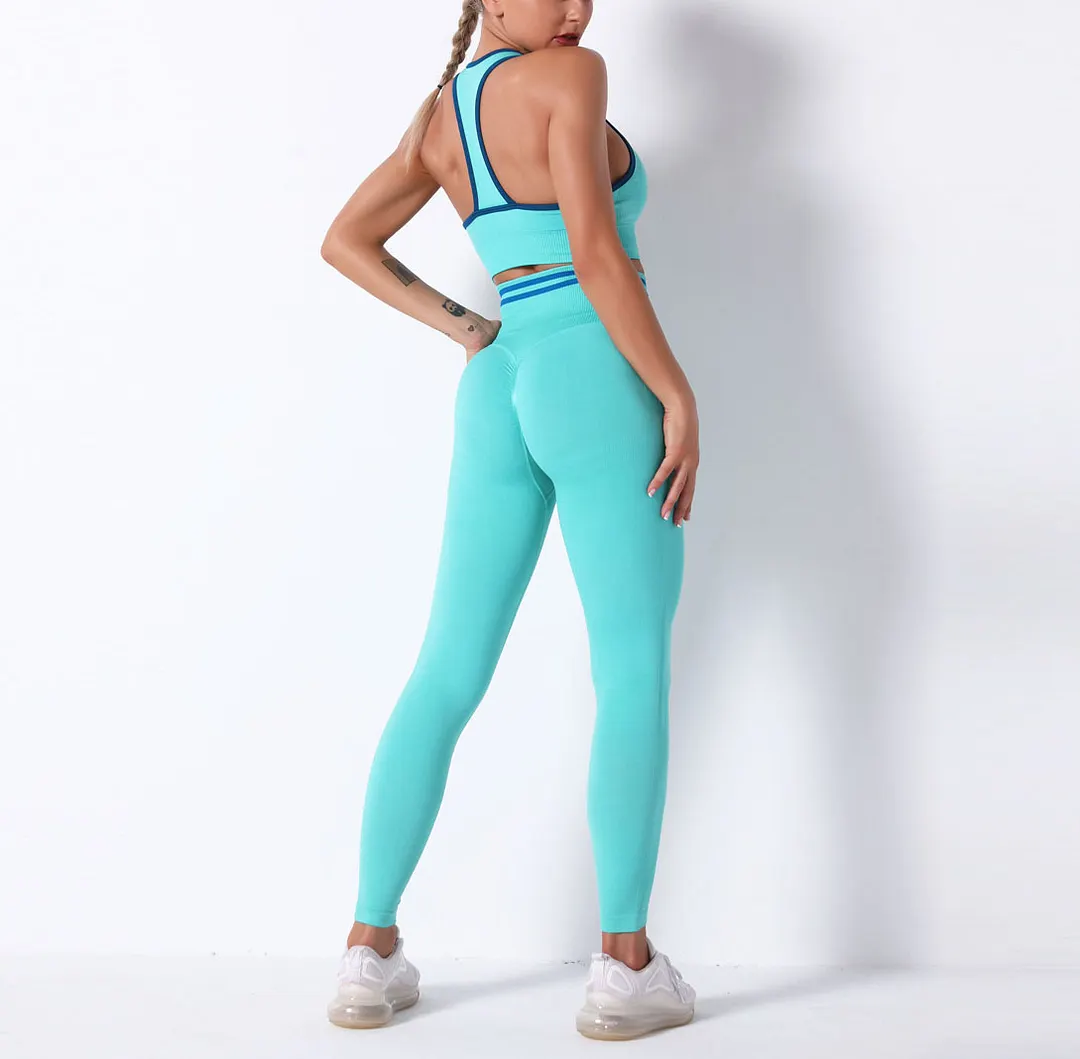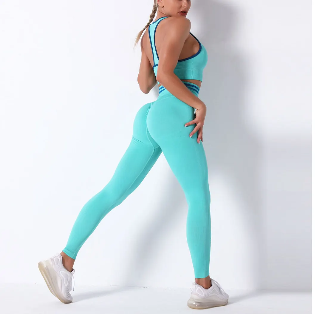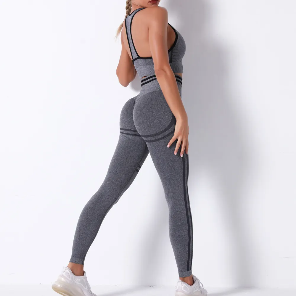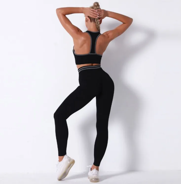 Wholesaleactivewears White Seamless Knitted Bra Set Sexy Hip Fitness Yoga Pants