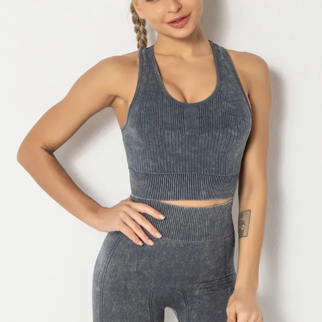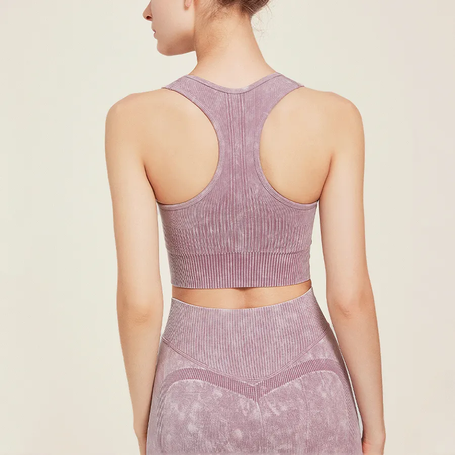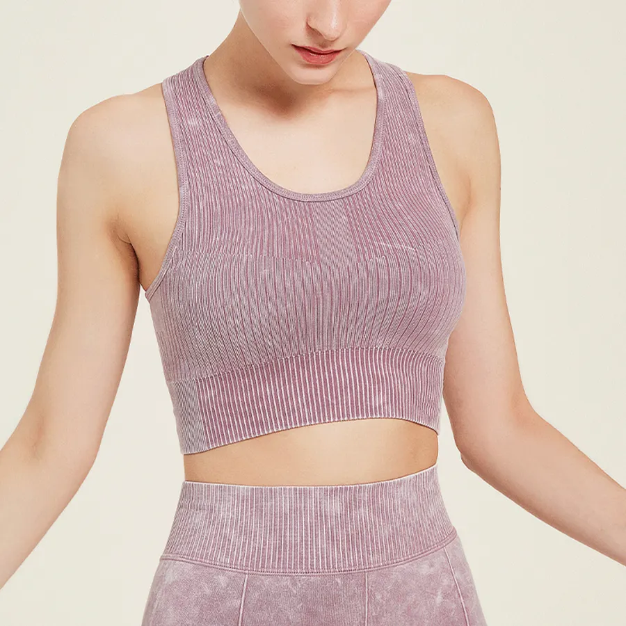 Wholesaleactivewears Purple Seamless Sports Bra High Elastic Jacquard Washed Sleeveless Vest
