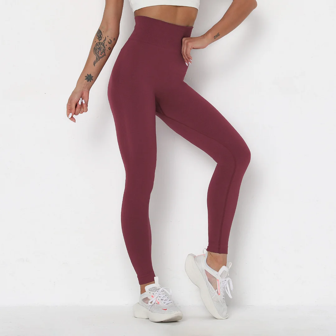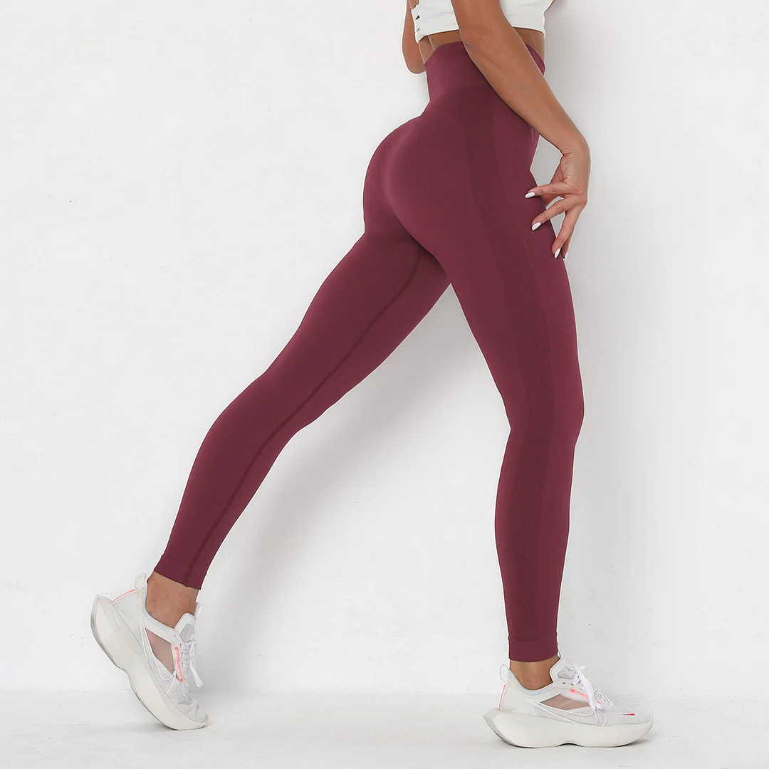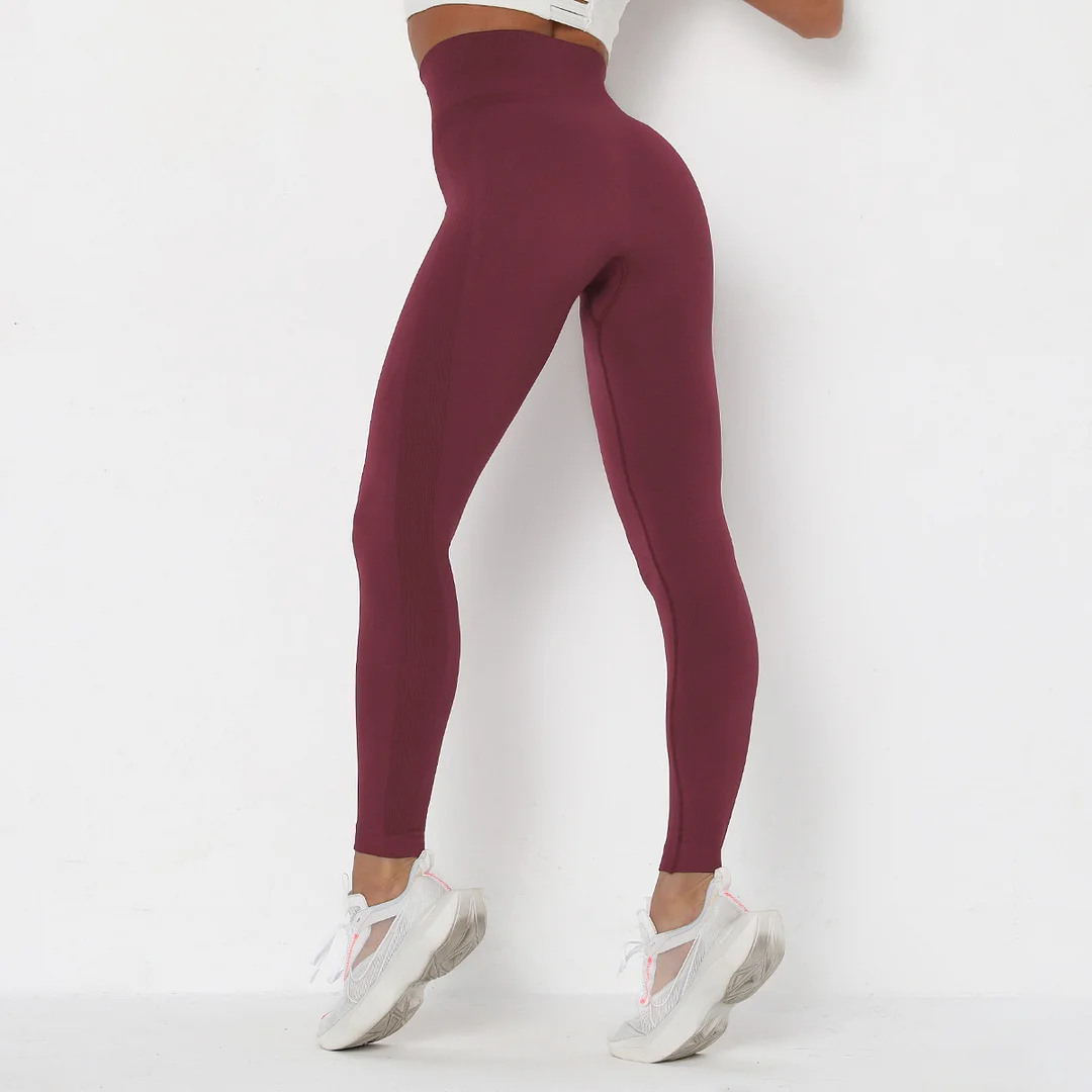 Wholesaleactivewears Wine Red Seamless High Waist Tight-fitting Hip-lifting Outdoor Running Sweatpants