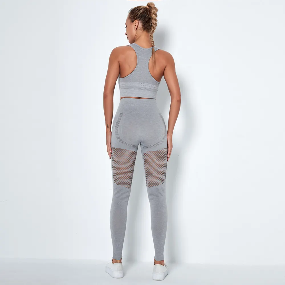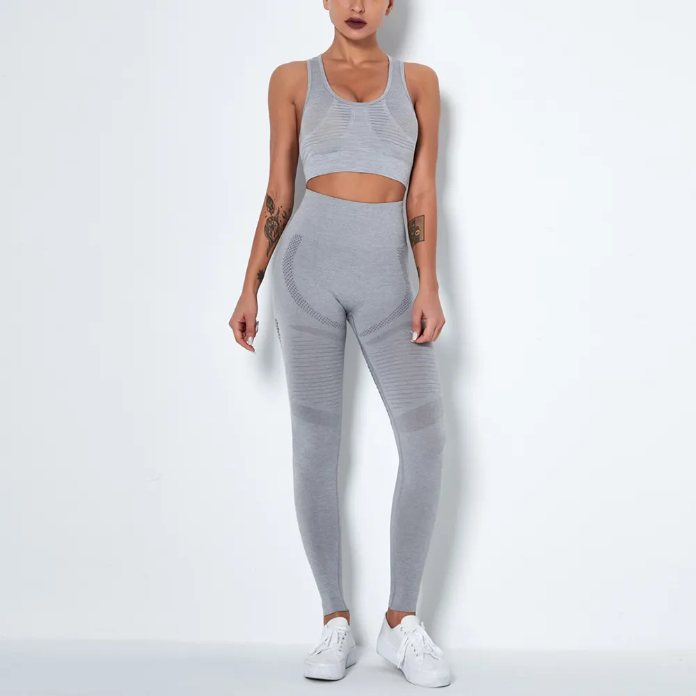Wholesaleactivewears Dark Gray Seamless Bra And Quick-drying Yoga Vest Set
