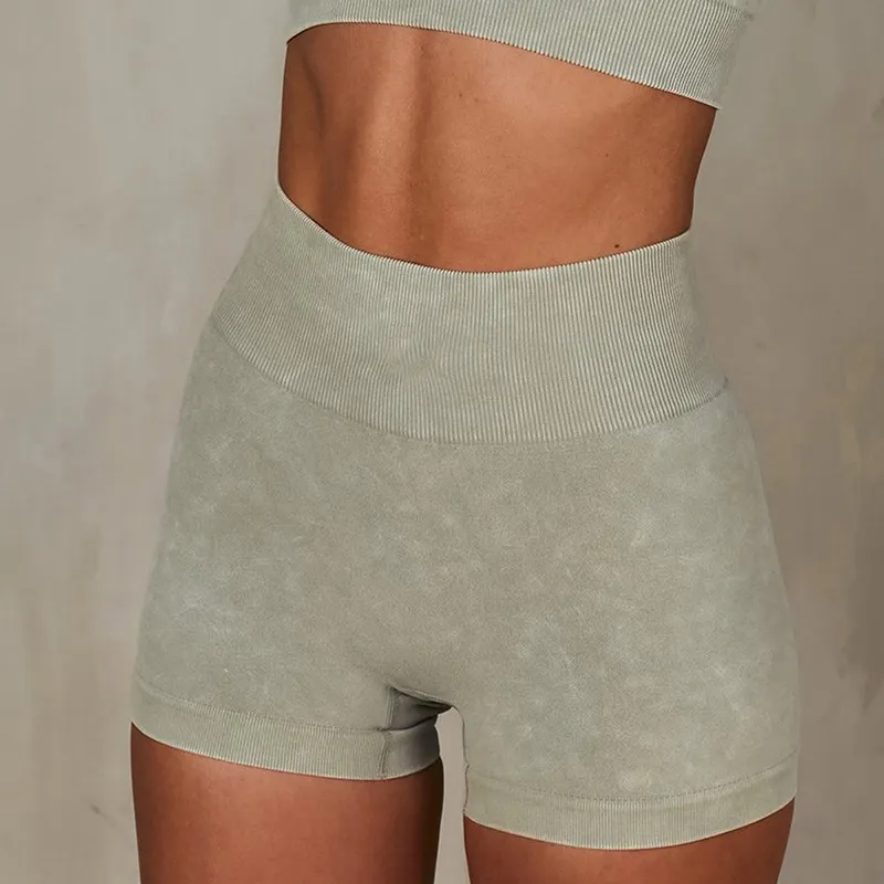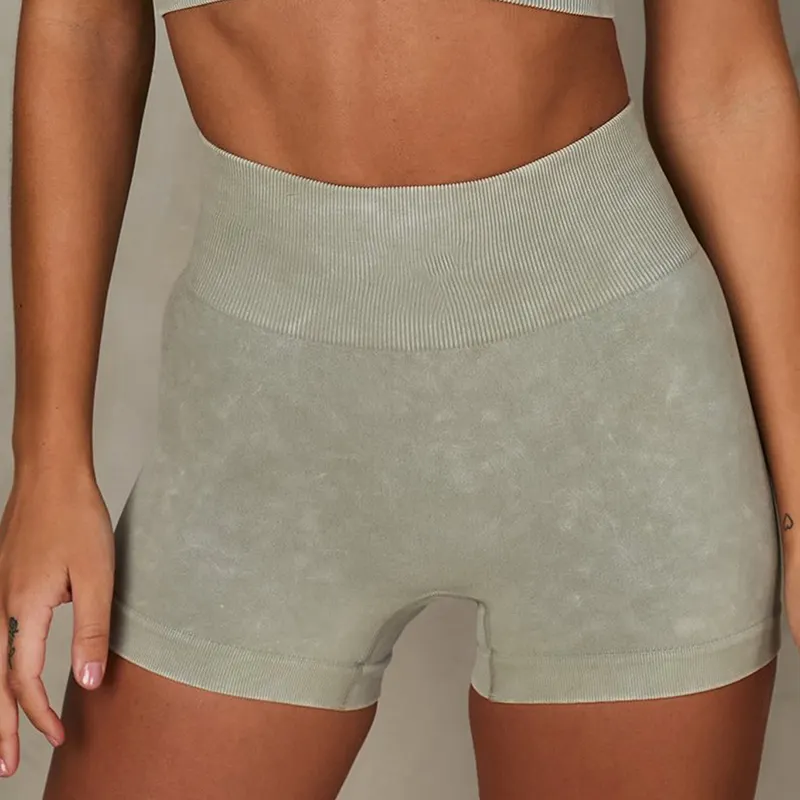 Wholesaleactivewears Black Sand Washed Super Stretch Super Stretch Yoga Pants Tight Sports Shorts