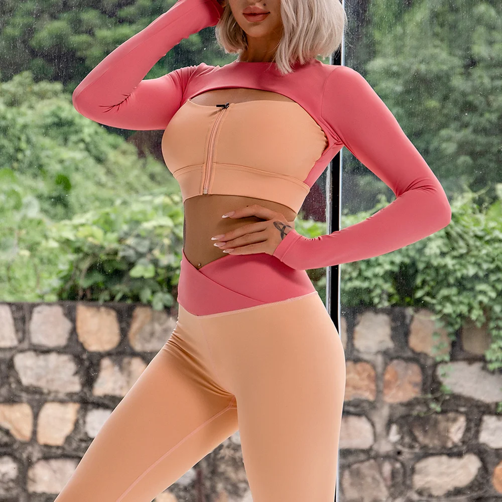 Wholesaleactivewears Blue Contrasting Color Stitching Fitness Clothing Suit Outdoor Running Yoga Five-piece Suit