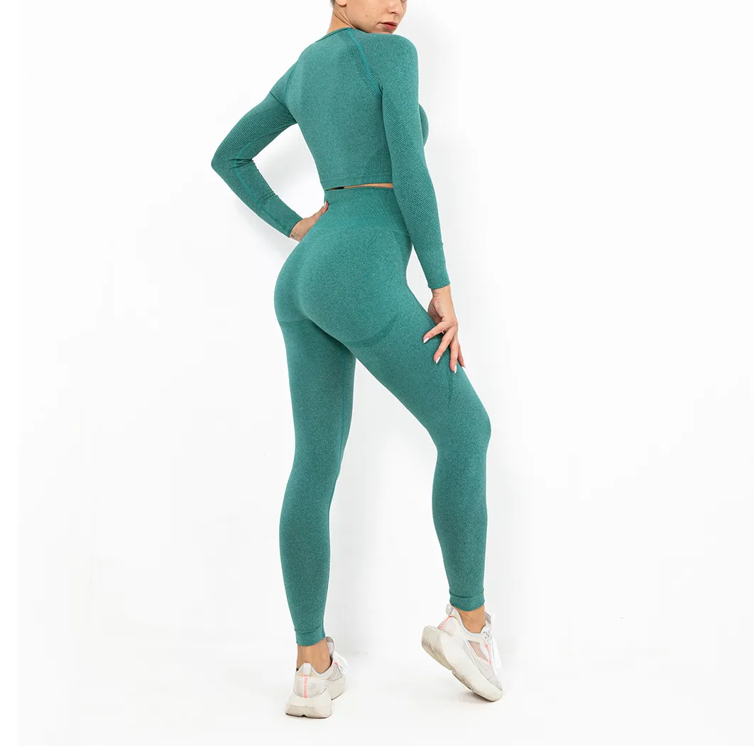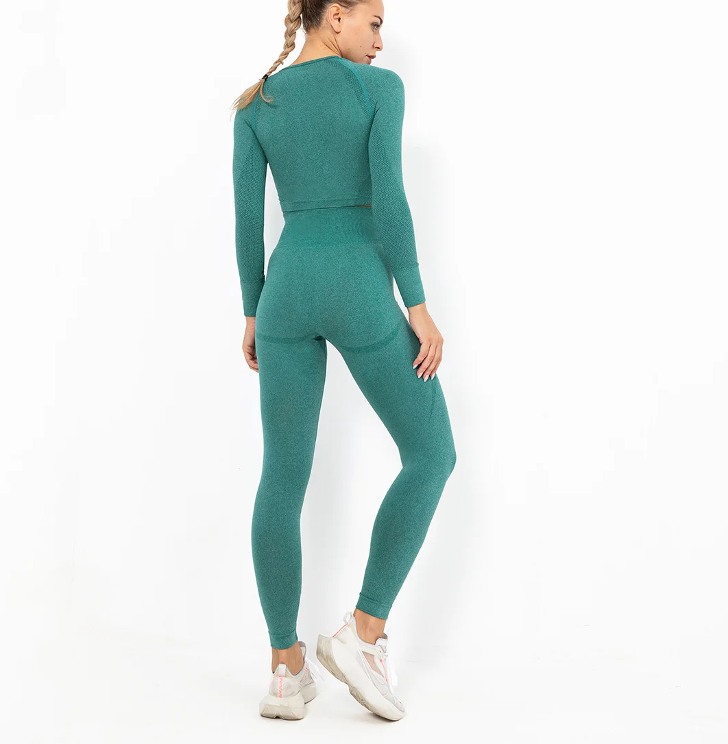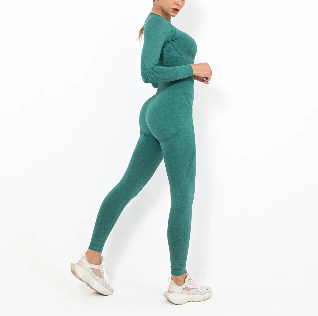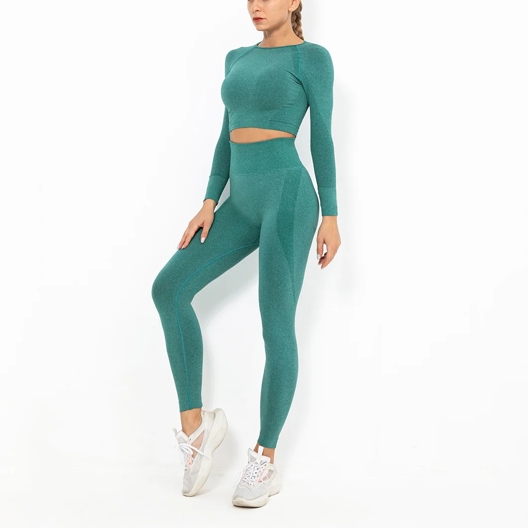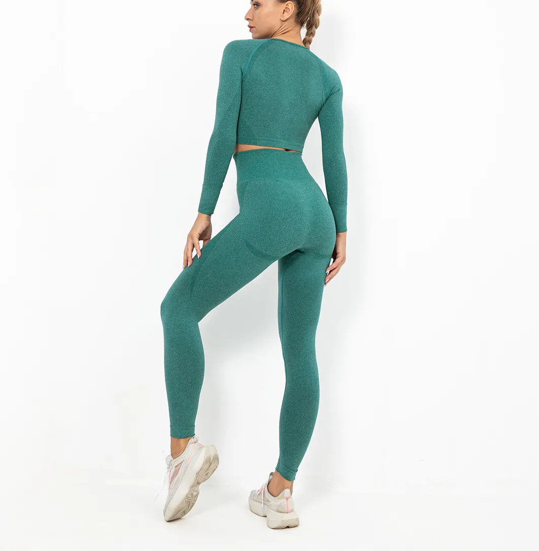Wholesaleactivewears Dark Green Seamless Crescent Tight-fitting Stretch Long-sleeved Running Fitness Sports Suit