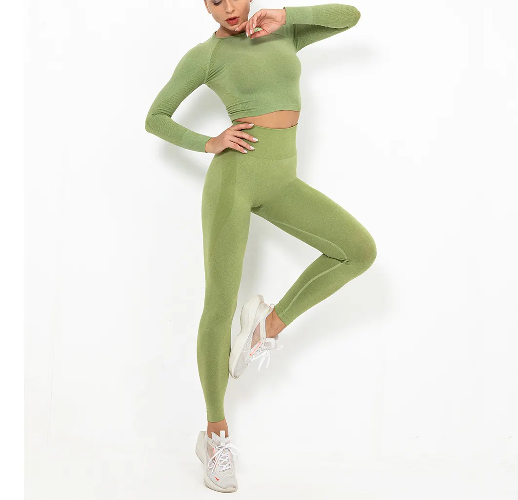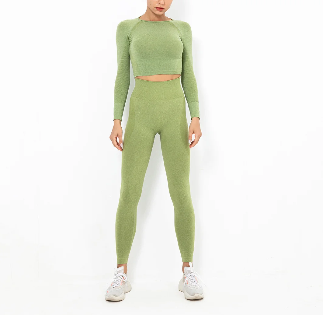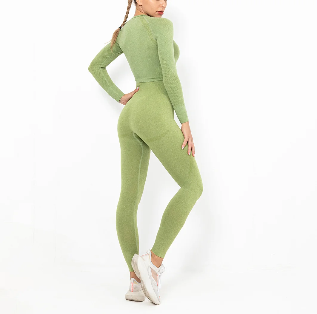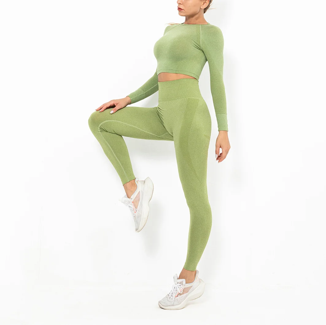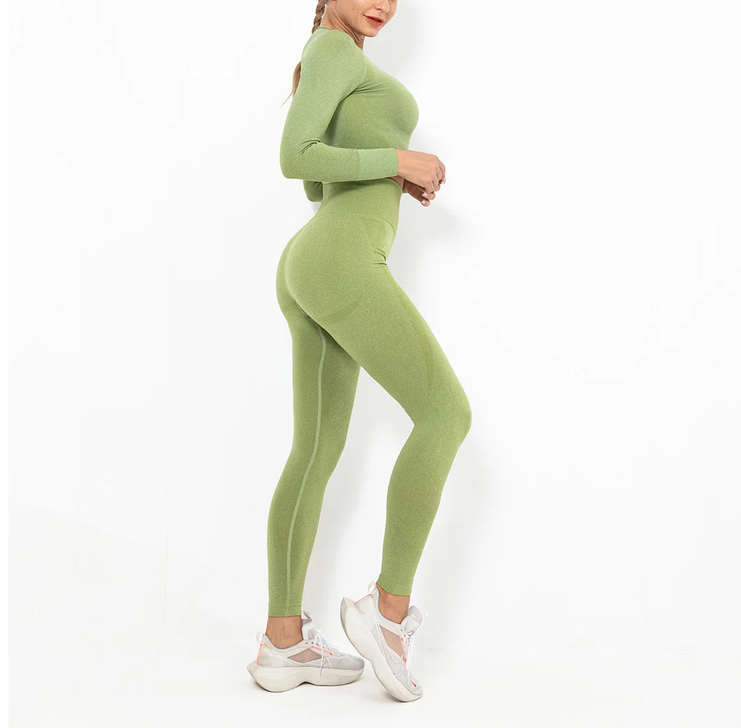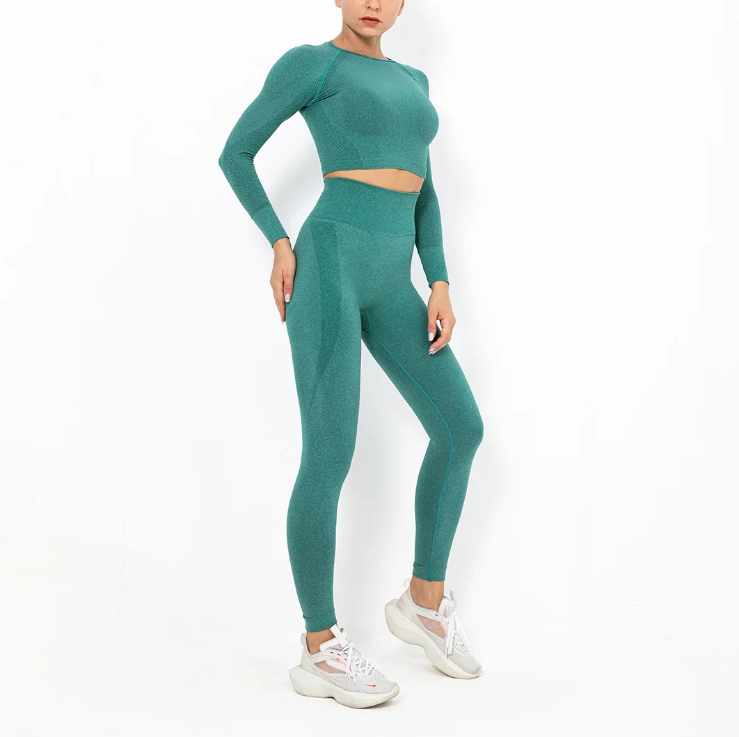 Wholesaleactivewears Dark Green Seamless Crescent Tight-fitting Stretch Long-sleeved Running Fitness Sports Suit