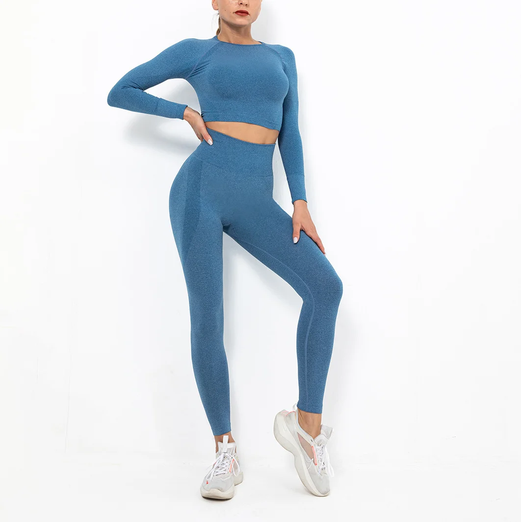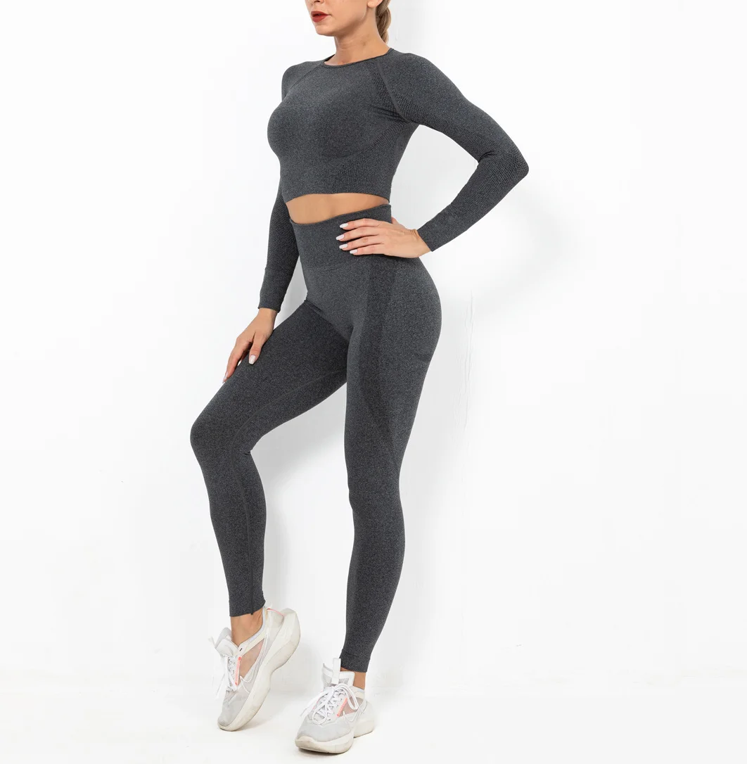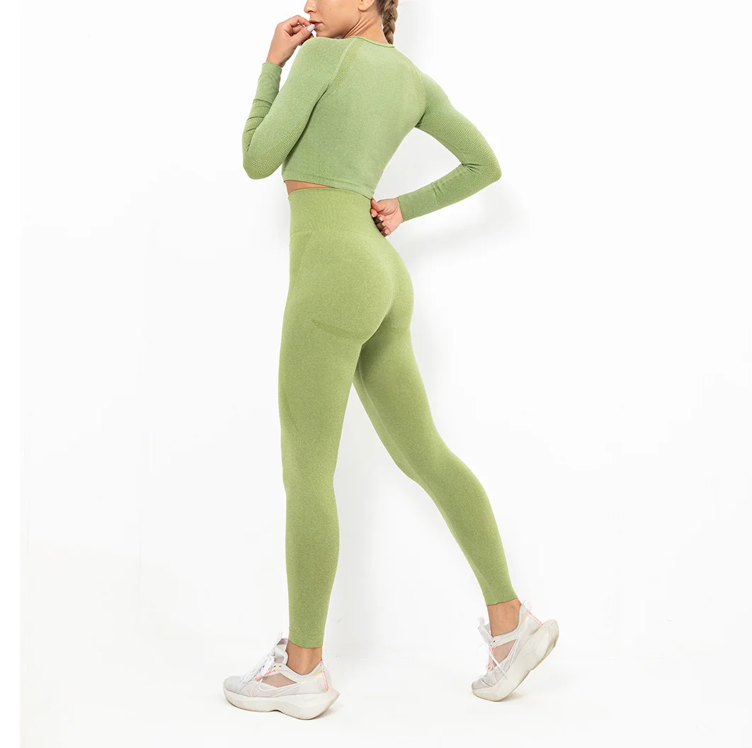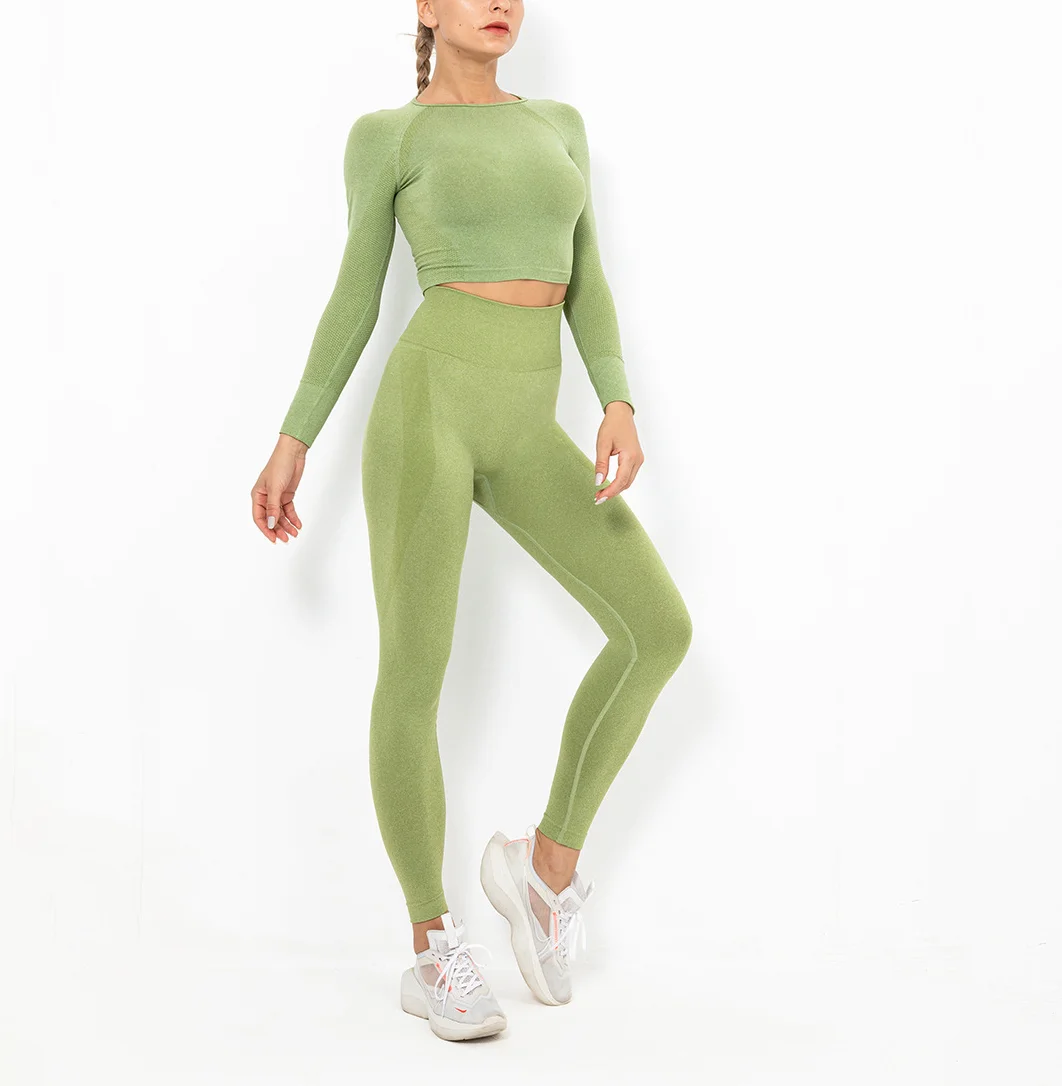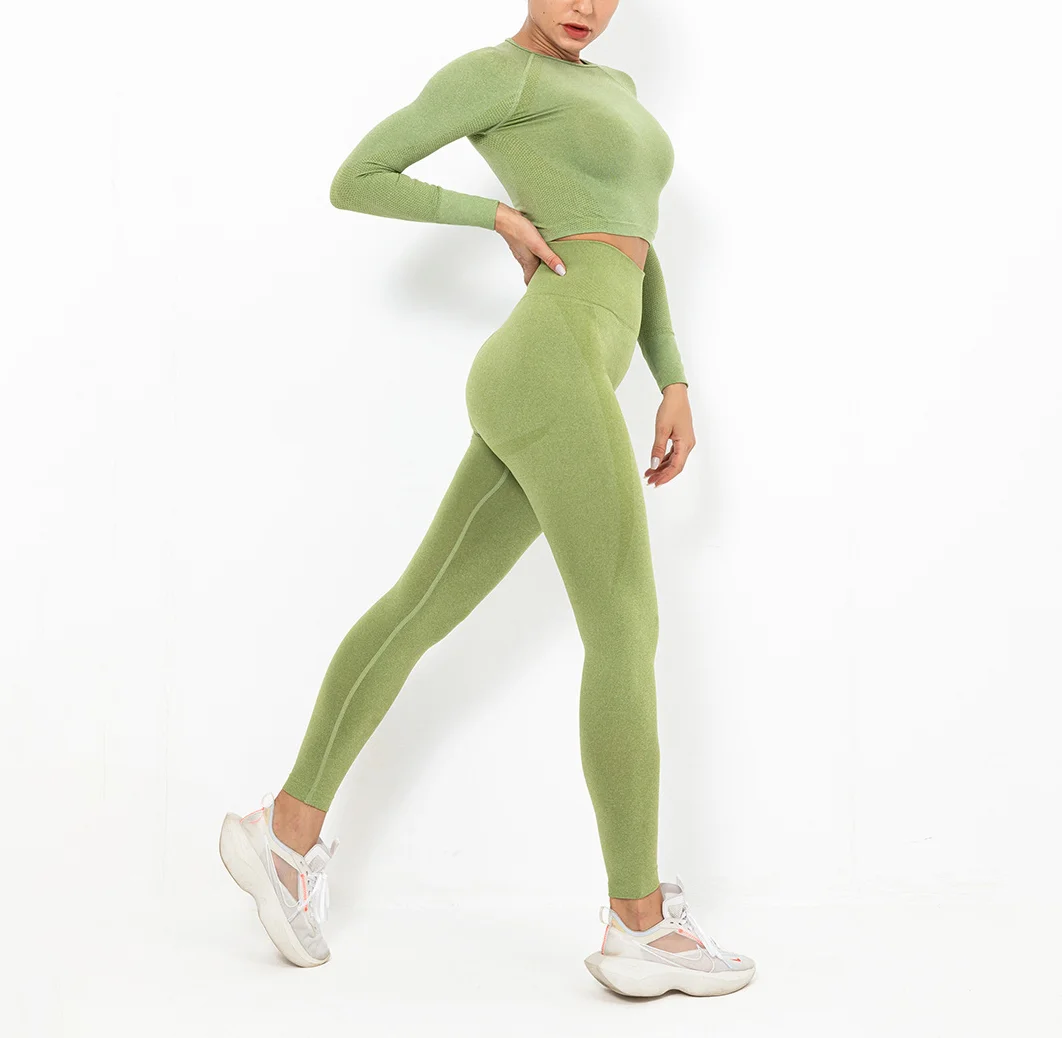 Wholesaleactivewears Dark Green Seamless Crescent Tight-fitting Stretch Long-sleeved Running Fitness Sports Suit