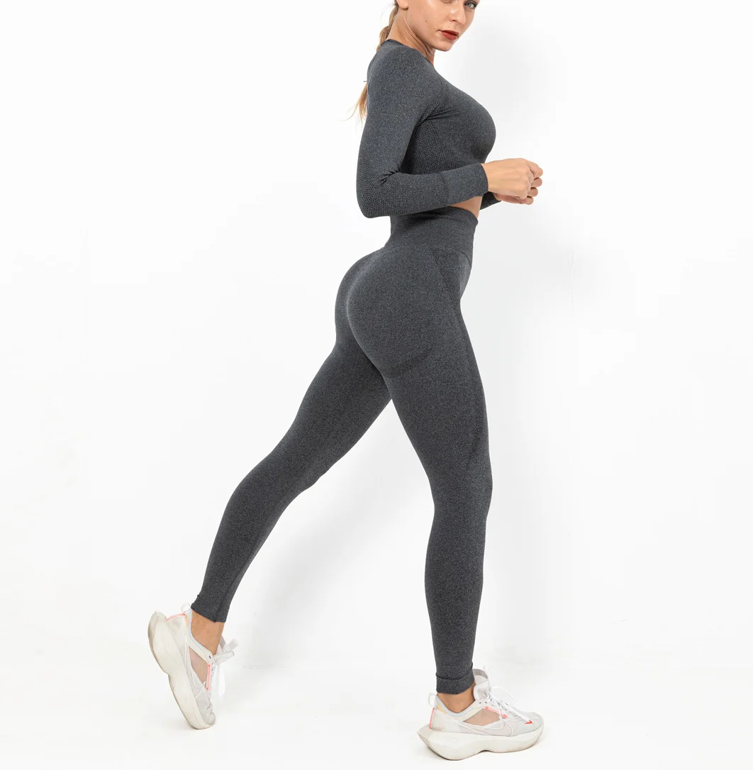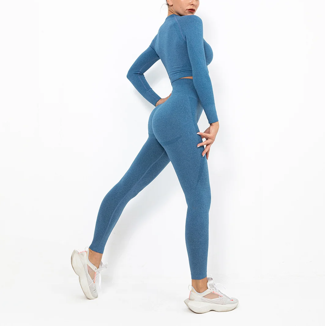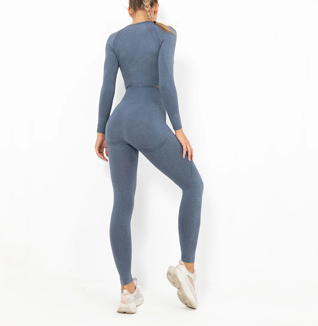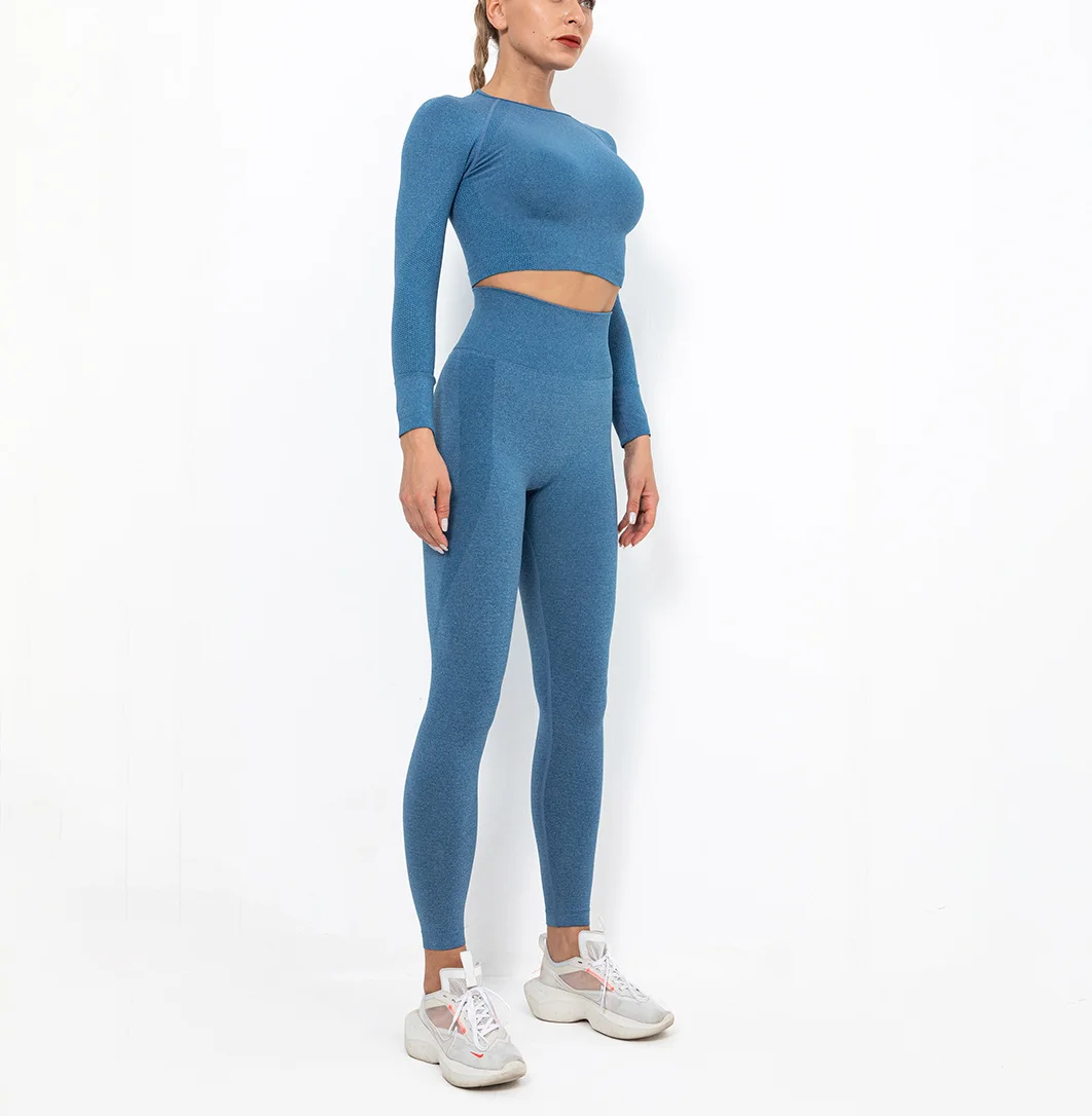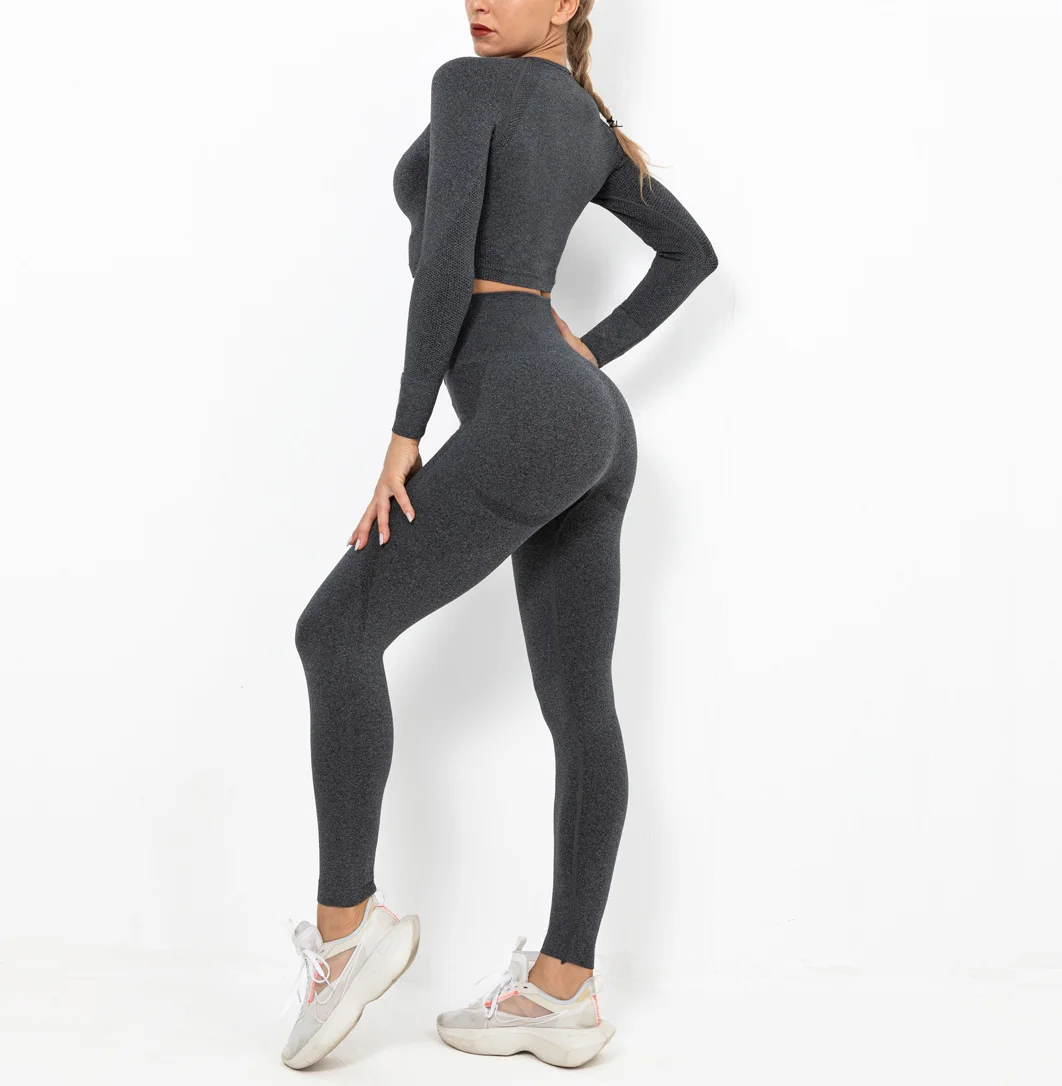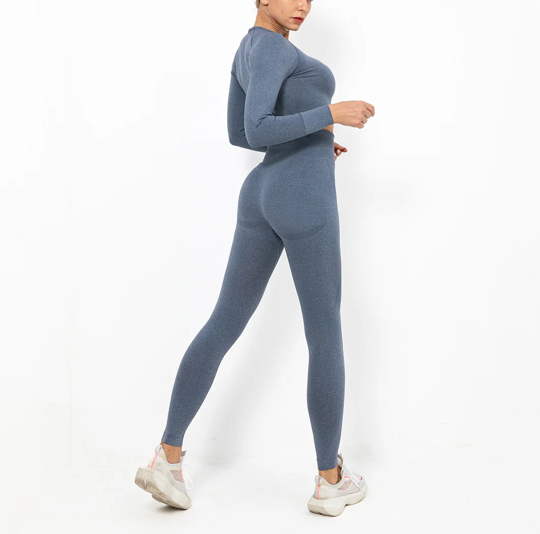 Wholesaleactivewears Dark Green Seamless Crescent Tight-fitting Stretch Long-sleeved Running Fitness Sports Suit