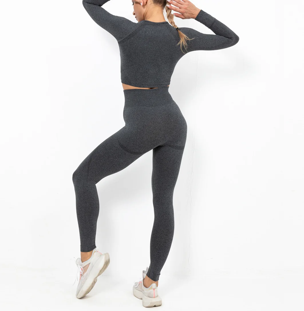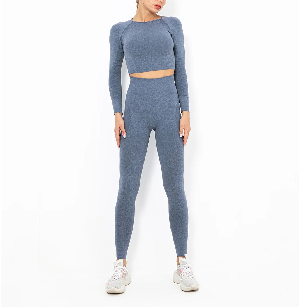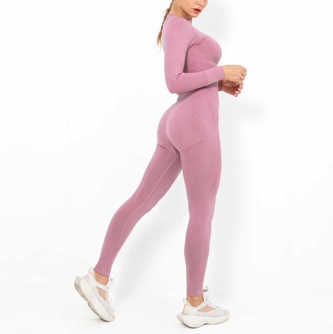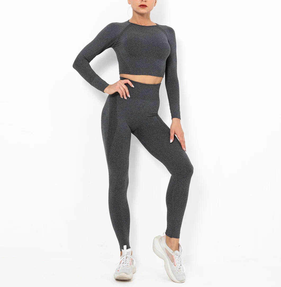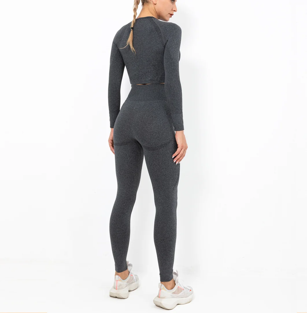 Wholesaleactivewears Dark Green Seamless Crescent Tight-fitting Stretch Long-sleeved Running Fitness Sports Suit
