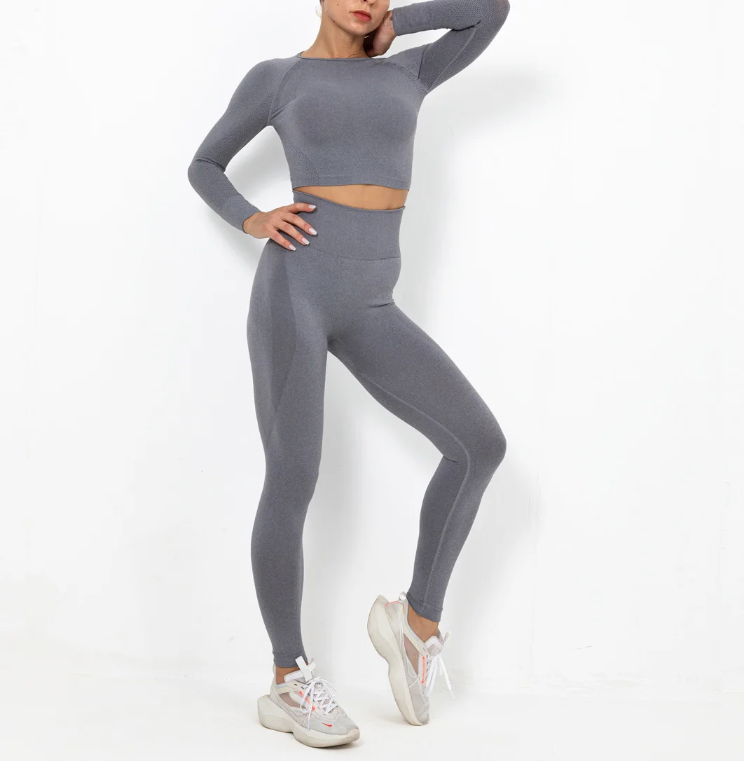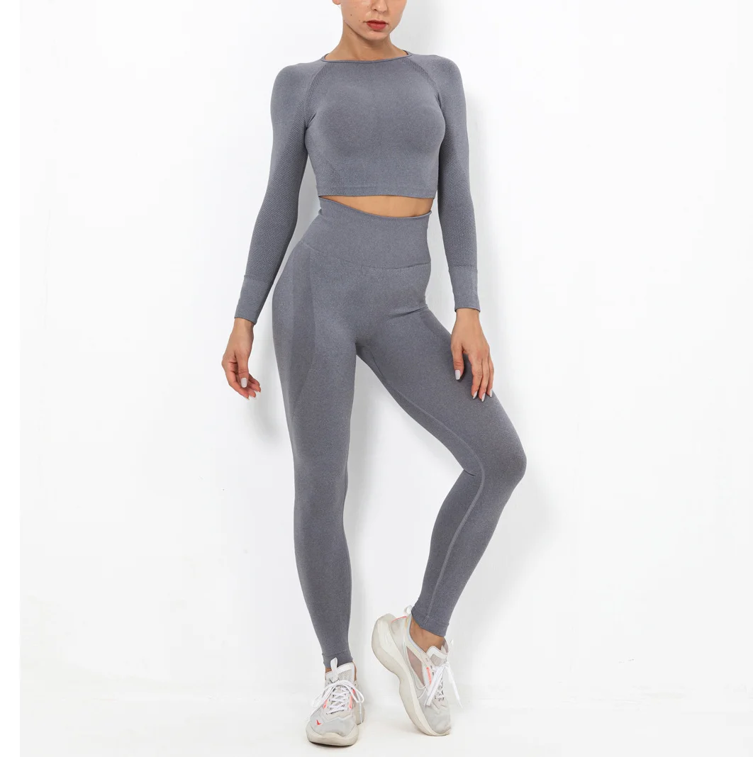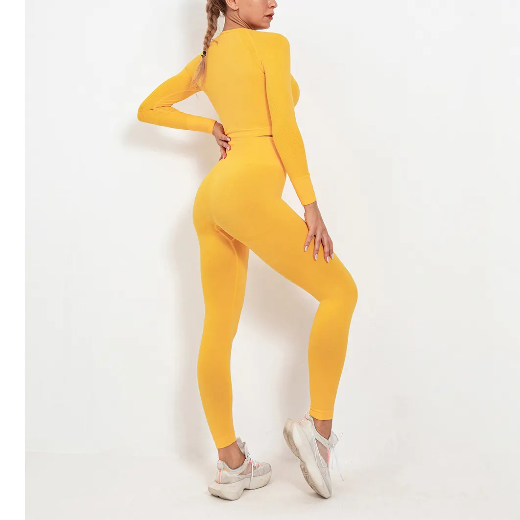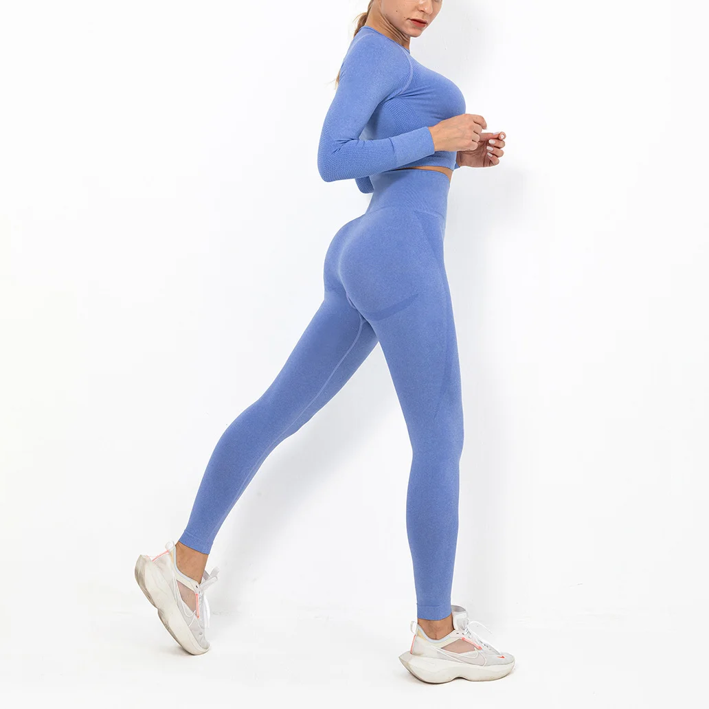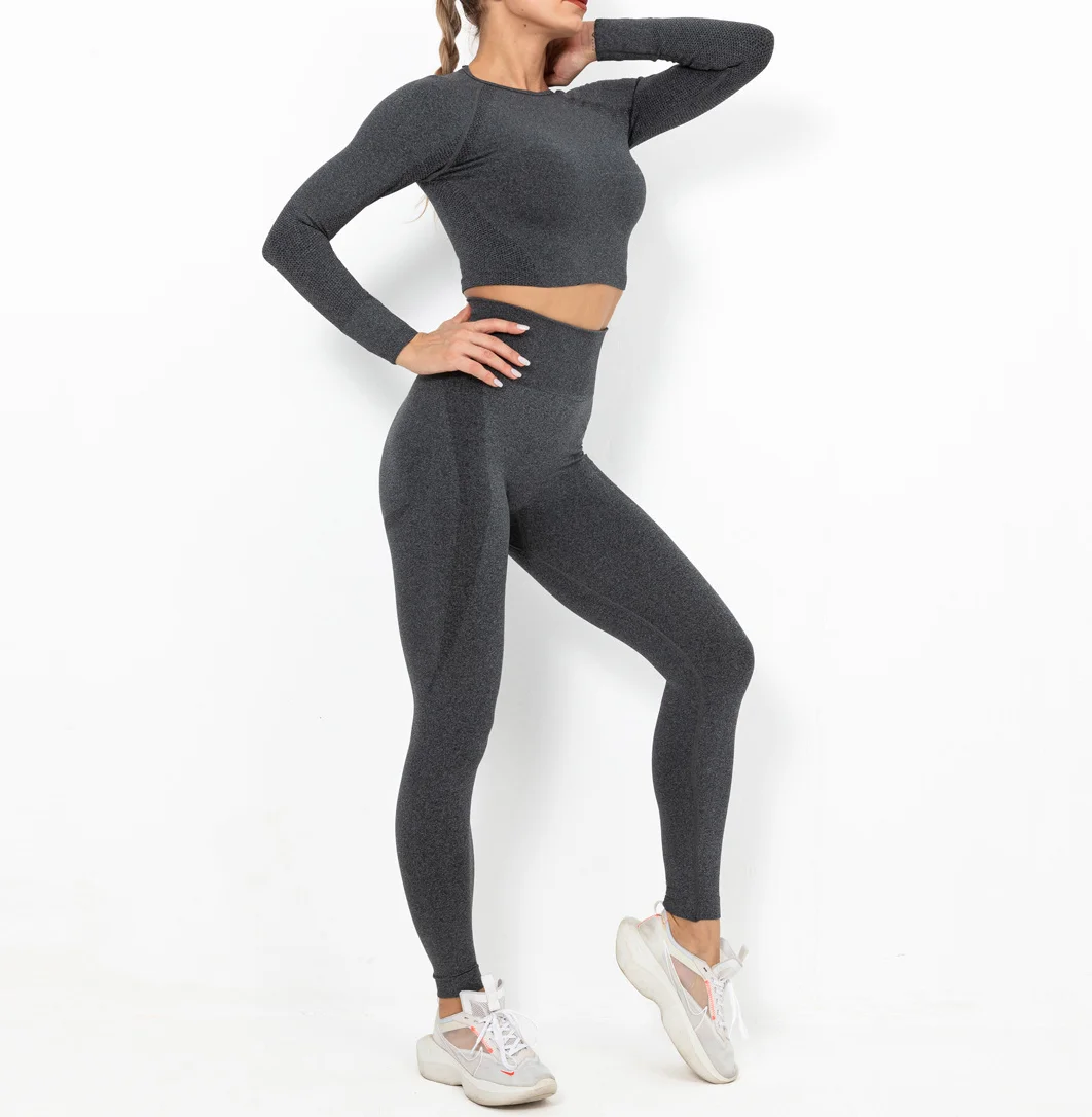 Wholesaleactivewears Dark Green Seamless Crescent Tight-fitting Stretch Long-sleeved Running Fitness Sports Suit