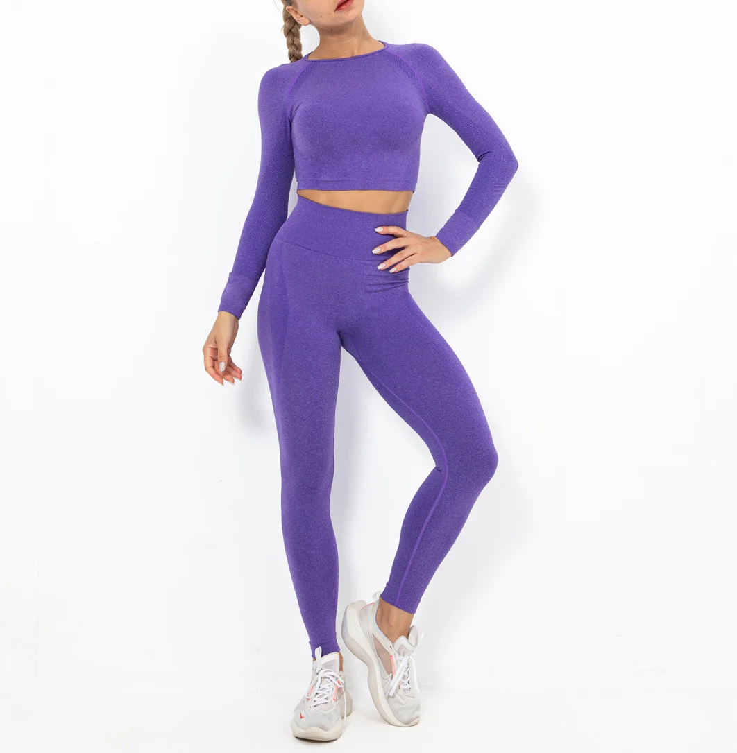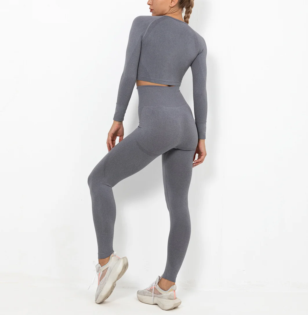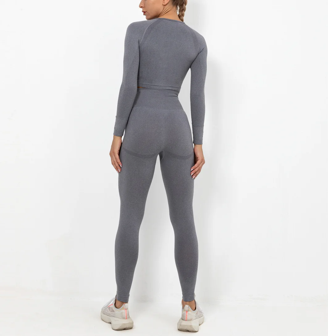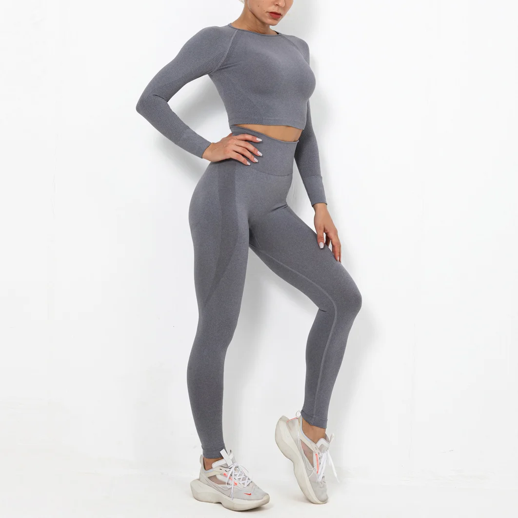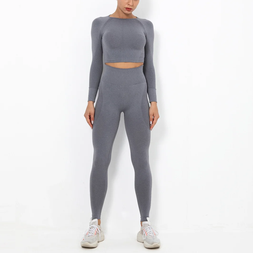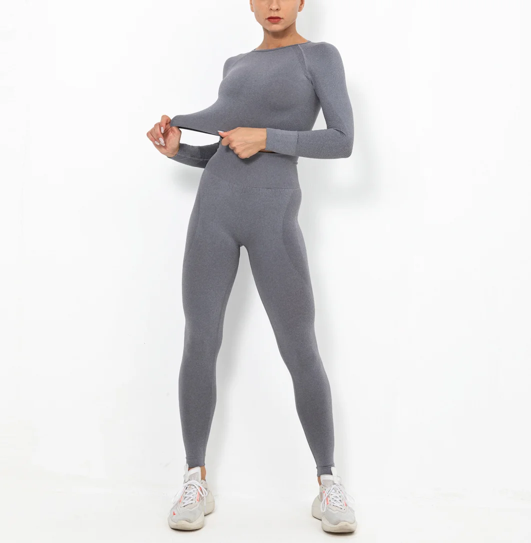 Wholesaleactivewears Dark Green Seamless Crescent Tight-fitting Stretch Long-sleeved Running Fitness Sports Suit