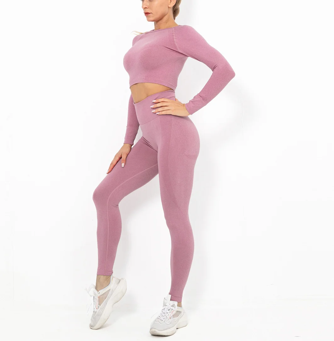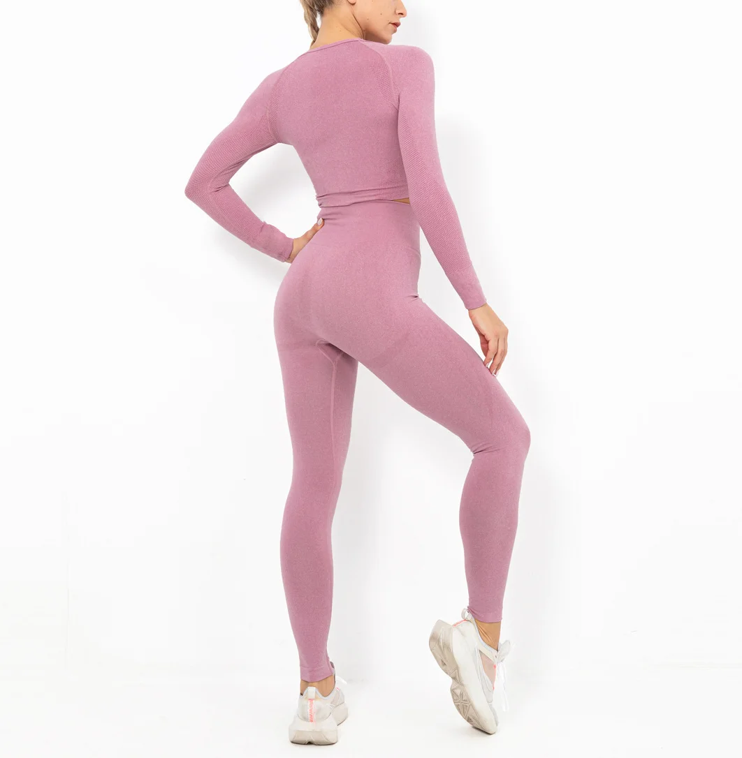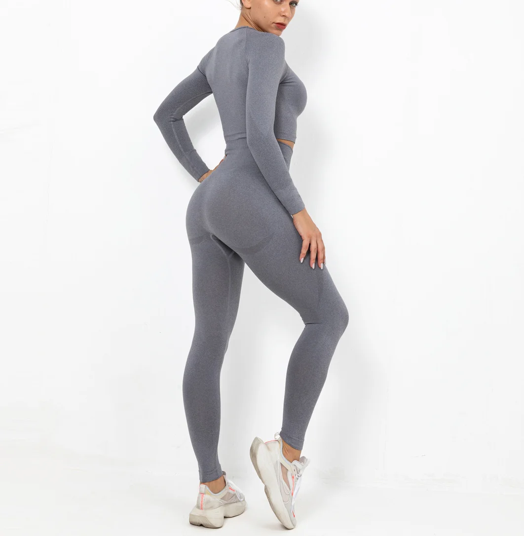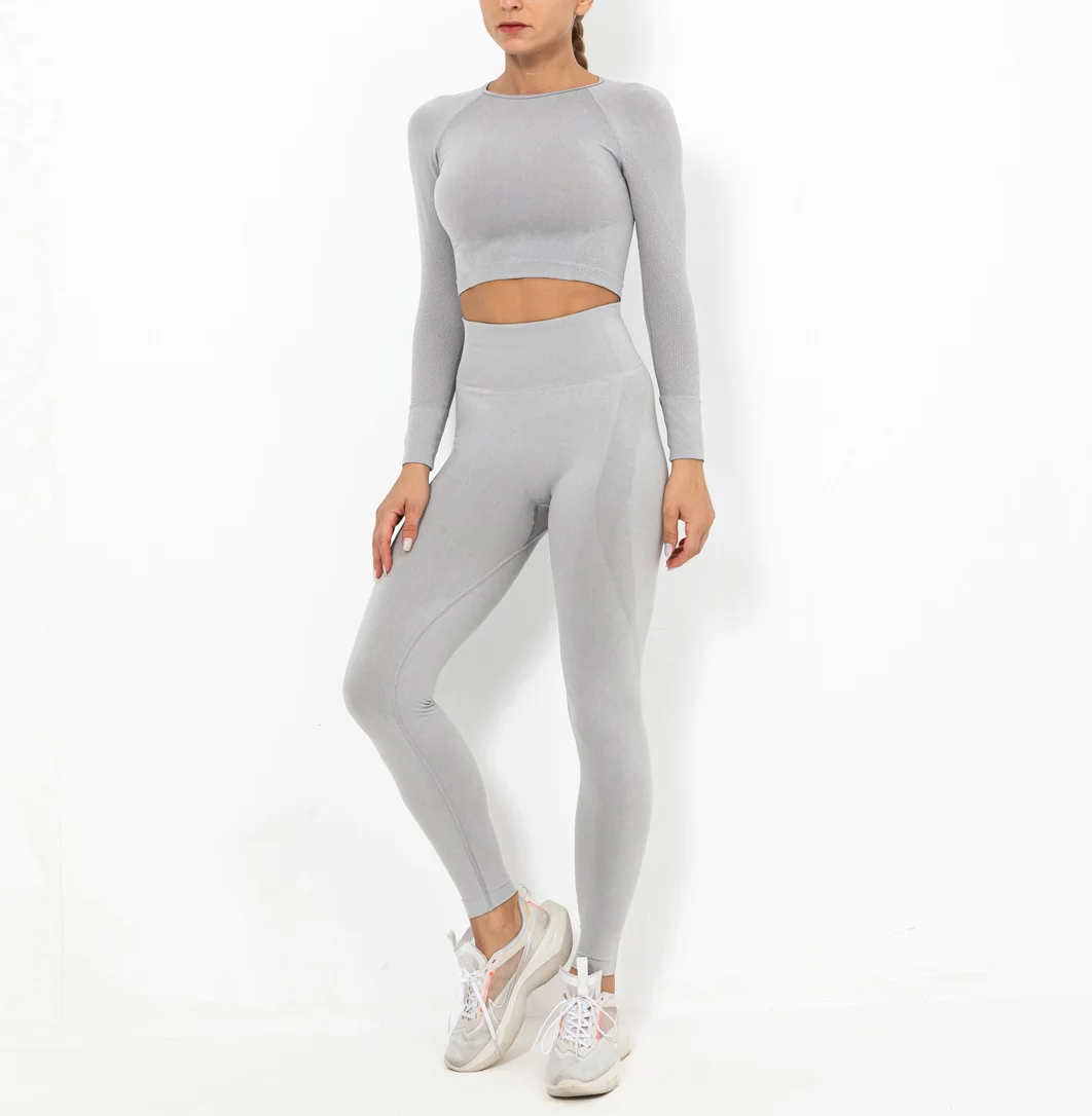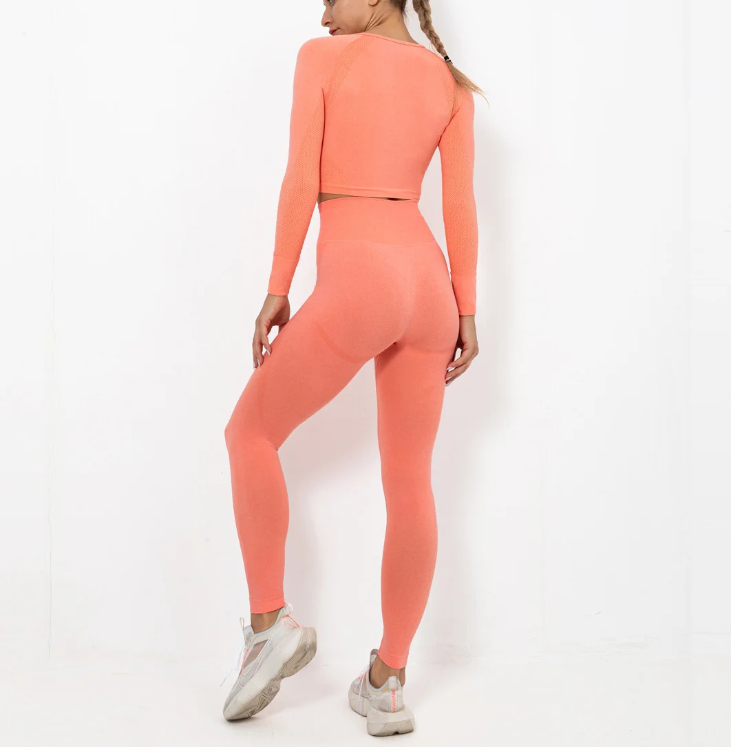 Wholesaleactivewears Dark Green Seamless Crescent Tight-fitting Stretch Long-sleeved Running Fitness Sports Suit