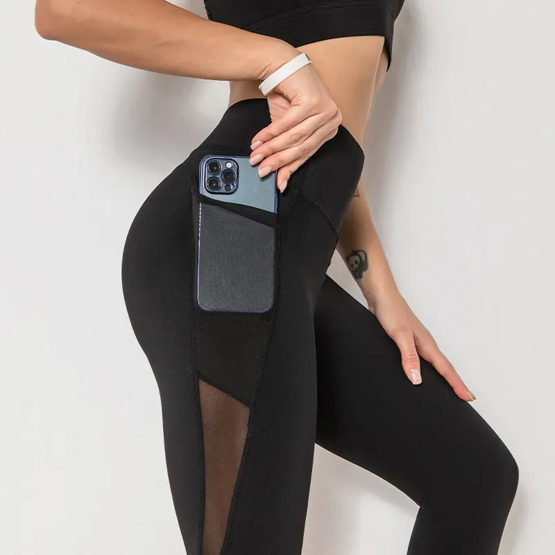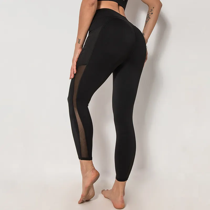 Wholesaleactivewears Green High-elastic High-waist Hip-lifting Fitness Mesh Stitching Yoga Pants