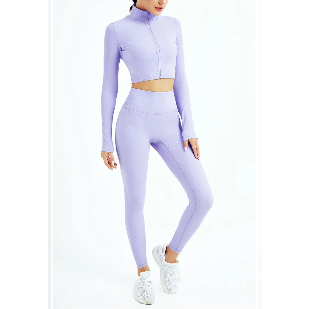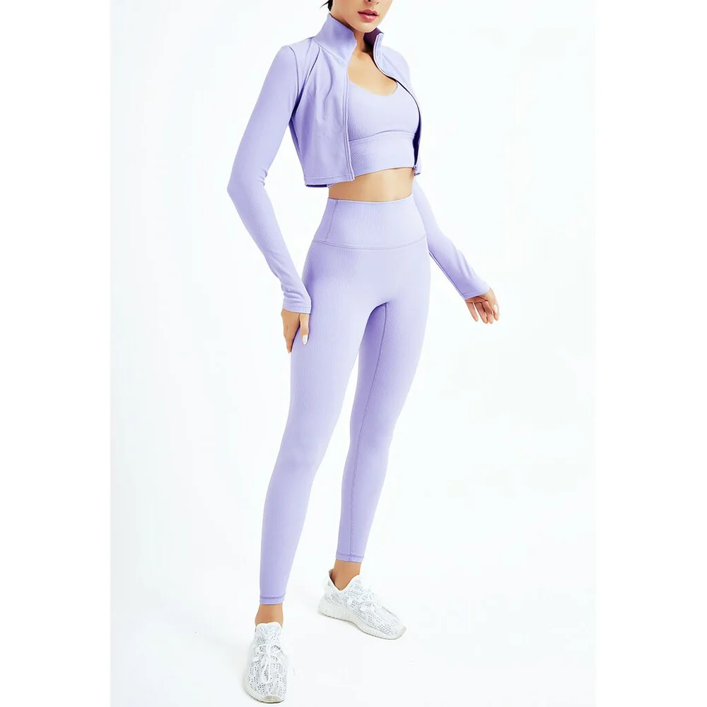 Wholesaleactivewears Green Long Sleeve Zip Cardigan Jacket Three-piece Running Sports Yoga Suit