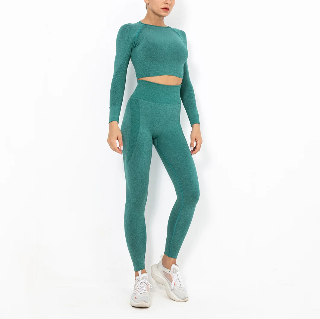 Wholesaleactivewears Purple Seamless Crescent Tight-fitting Stretch Long-sleeved Running Fitness Sports Suit Activewear Set