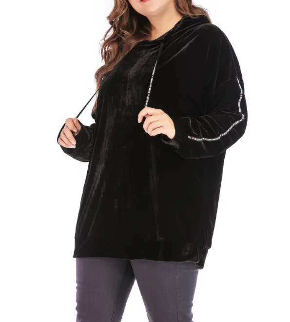 Women's gold velvet hooded sweater plus size women's sweater